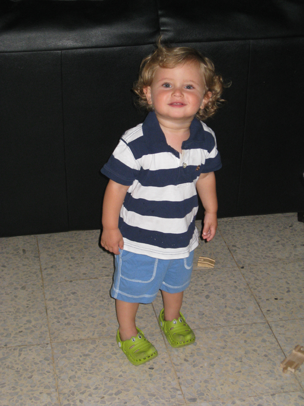 We traipse round in the heat for 3 hours looking for a place to live. No luck, every place has something we don’t like. Still, have to start somewhere and at least we have an idea of what things cost. Jojo makes lots of friends with Israeli kids but the problem is, they are not used to seeing kids like him with his blonde cherubic looks. They sort of don’t realise he is a person. Several times the sellers have had to reprimand their well-meaning (but slightly over-enthusiastic) children that he is not a “buba” (doll). One of them stole his shoes off his feet and hid them in his toy cupboard. But he seems to be holding his own, he just stares at them and backs away if they get violent. Good approach to crazy people in life, in my opinion.