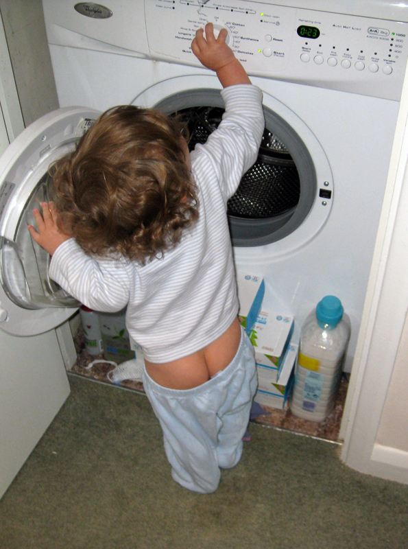 ahh, Jojo’s in the posting stage – watch out what he puts in the laundry. Liora’s still only putting clothes in but doesn’t matter if they’re clean or dirty.